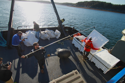 Check out the gallery for to see a portion of our plastic collection after 2 days on the deck of the Norseman with artists Mark Dion, Karen Larsen and expedition leader Howard Ferren; the film crew shooting deck hands stowing the plastic in container for shove off; and UK surfer/artist Andy Hughes shooting the Smithsonian’s spectroscopy lab.